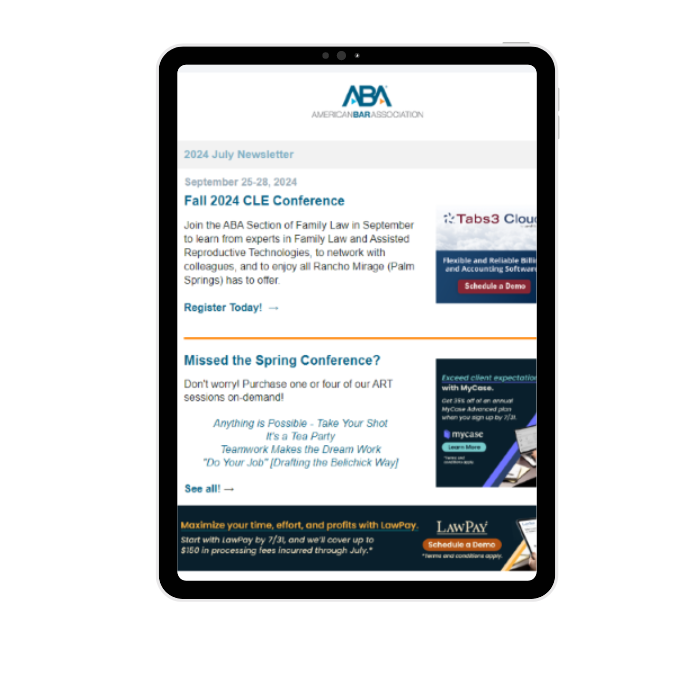 Put your message directly in the inbox of Members of the ABA Section of Family Law.
